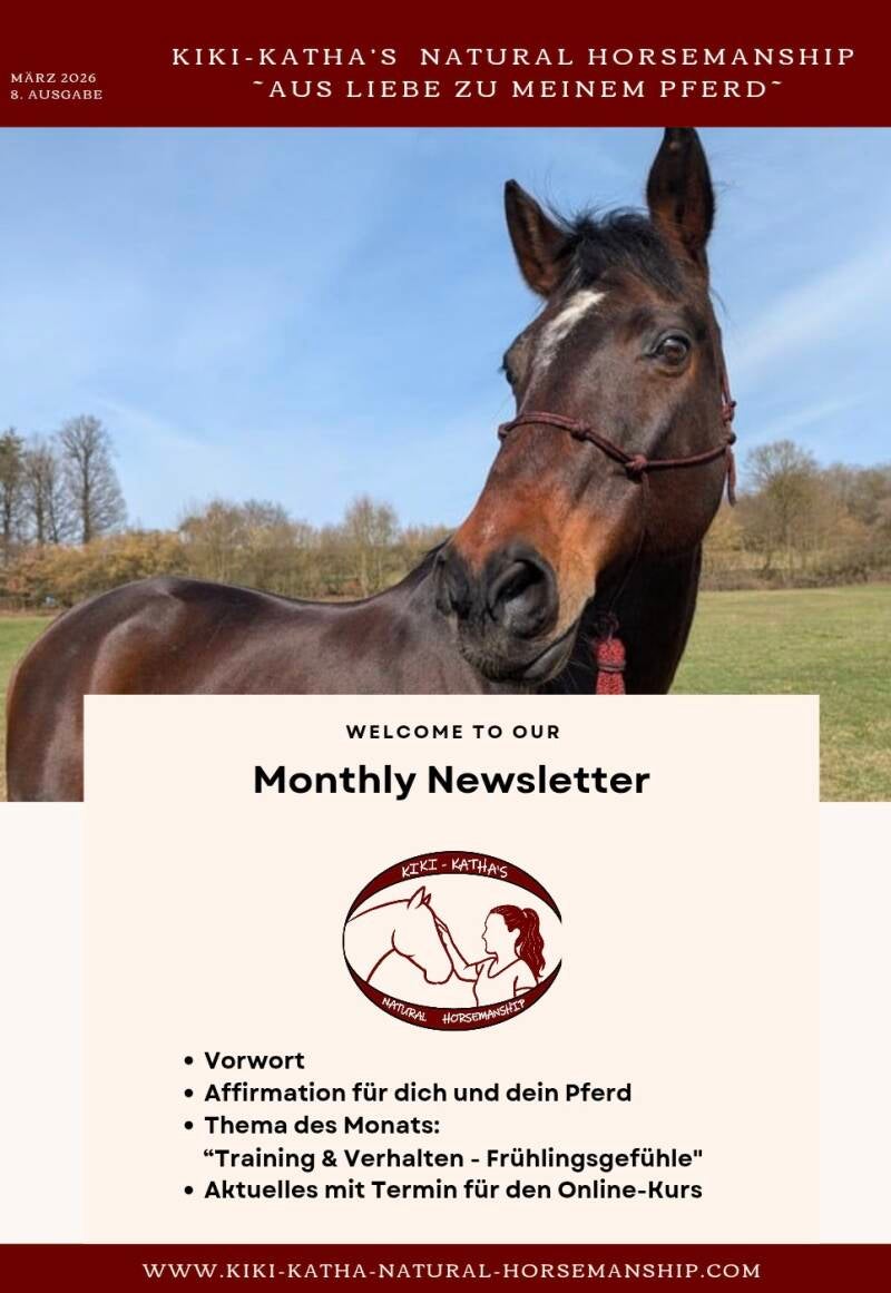 Der kostenlose Newsletter beinhaltet Aktuelles und ich greife ein Thema des Monats auf, das dir und deinem Pferd in der Theorie und Praxis weiter helfen soll.